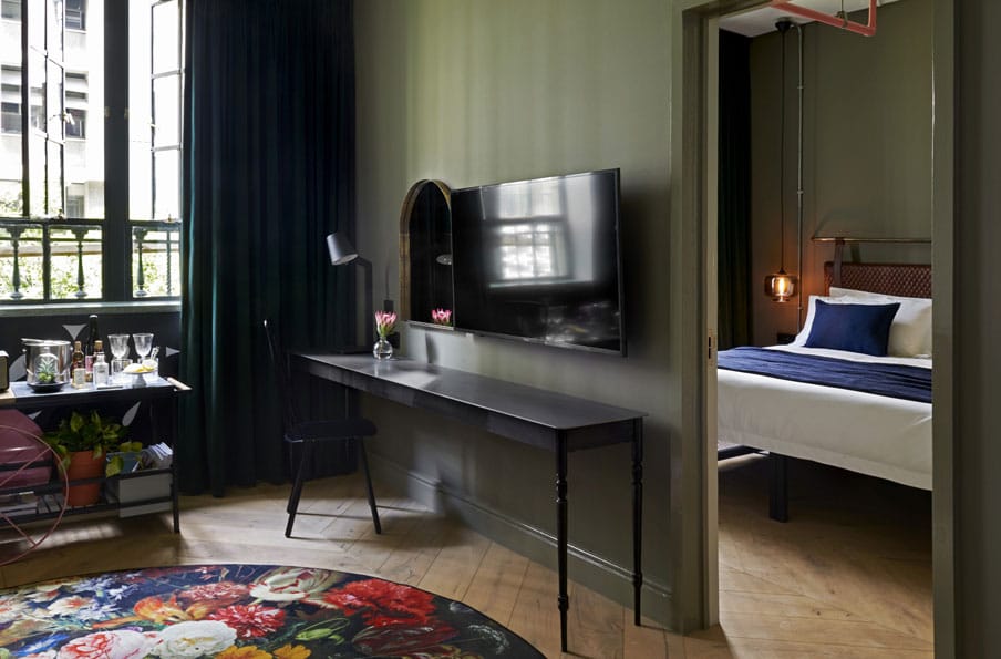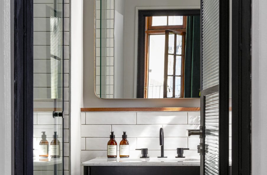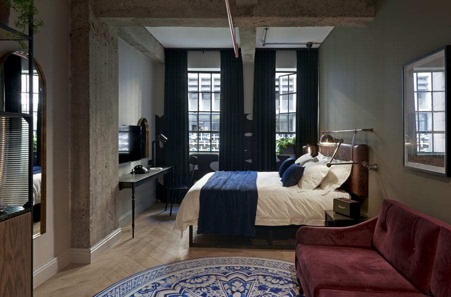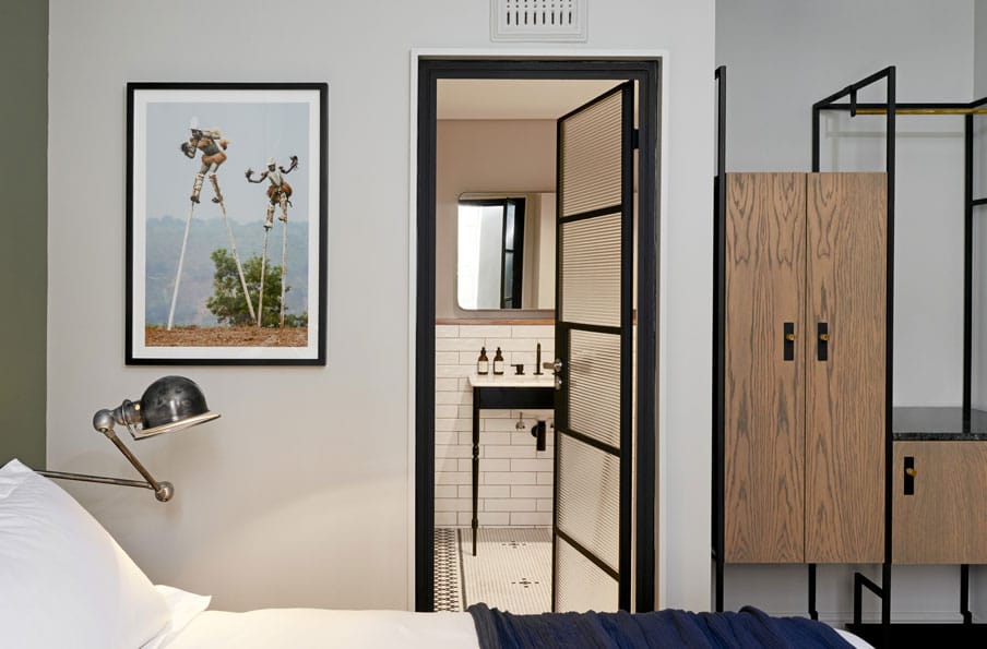 32 luxe rooms artfully blend industrial tones and modern Victorian design elements. From studios to 1 and 2-bedroom suites, our interiors are a visual feast that draw on the heritage of the historic buildings with luxury finishes custom designed by local artists and creators, including hand-painted wall art by David Brits. Our rooms are carefully curated to delight and inspire.